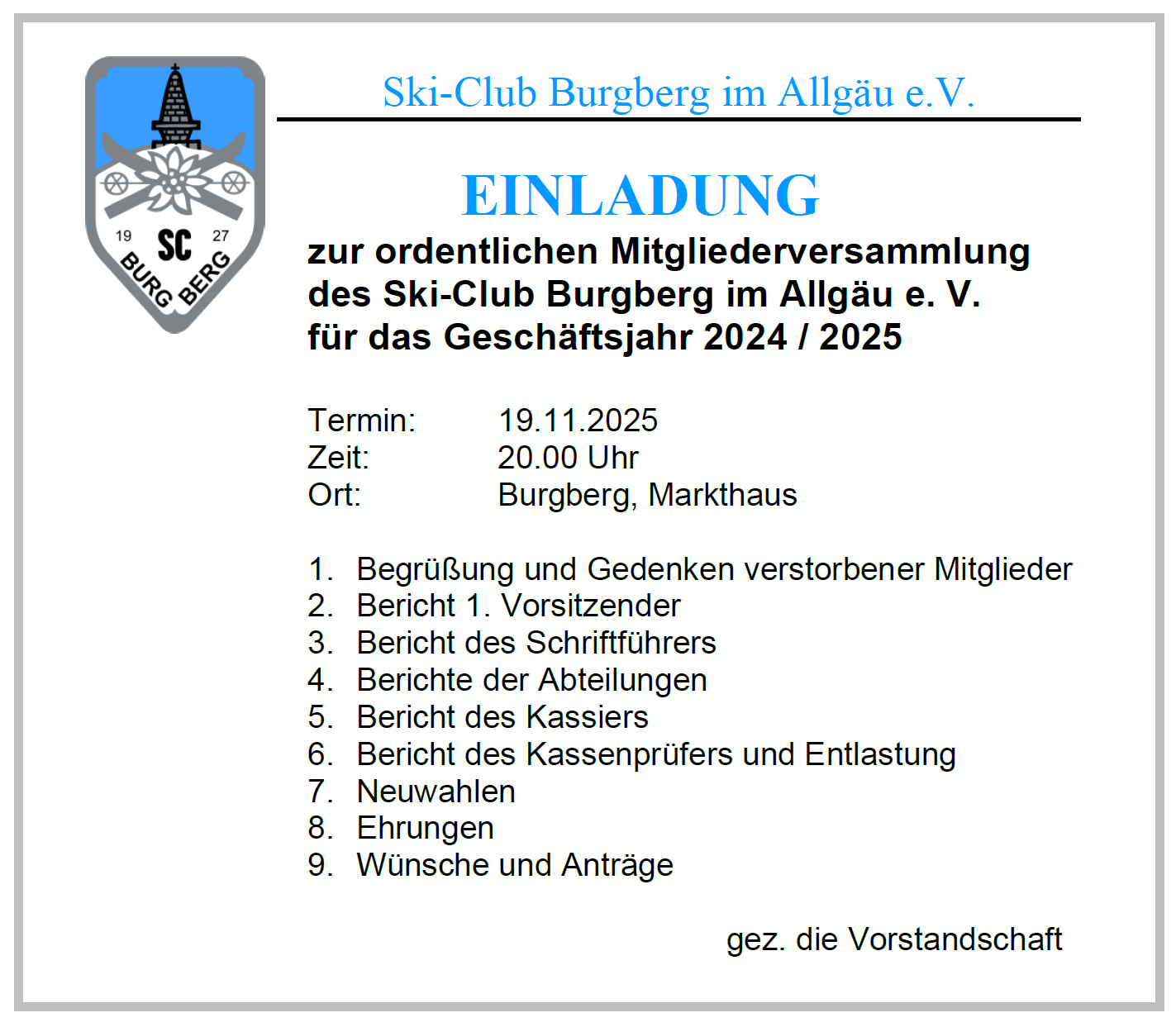 ordentliche Mitgliederversammlung 19.11.2025